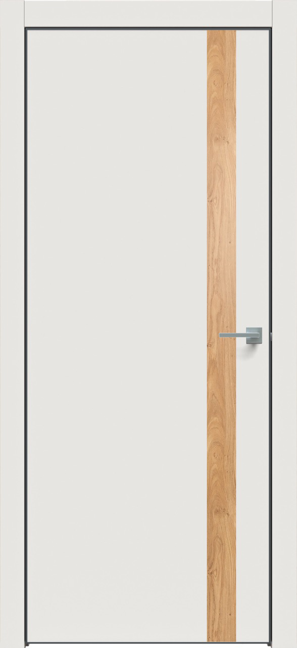 Дверь межкомнатная Triadoors 702. Белоснежный матовый. Кромка: Алюм. черный. Вставка: Дуб винчестер светлый