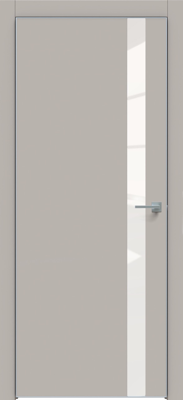 Дверь межкомнатная Triadoors 702. Шелл грей. Кромка: Алюм. хром. Вставка: Белый лакобель