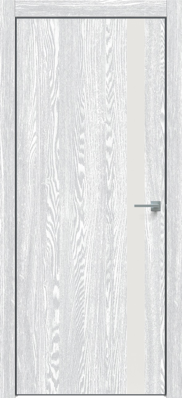 Дверь межкомнатная Triadoors 702. Дуб патина серый. Кромка: Алюм. черный Вставка: Белоснежный матовый