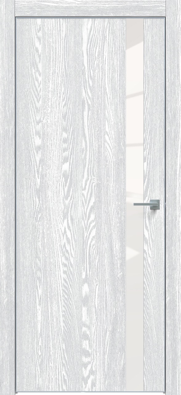 Дверь межкомнатная Triadoors 702. Дуб патина серый. Кромка: Алюм. хром Вставка: Белый лакобель