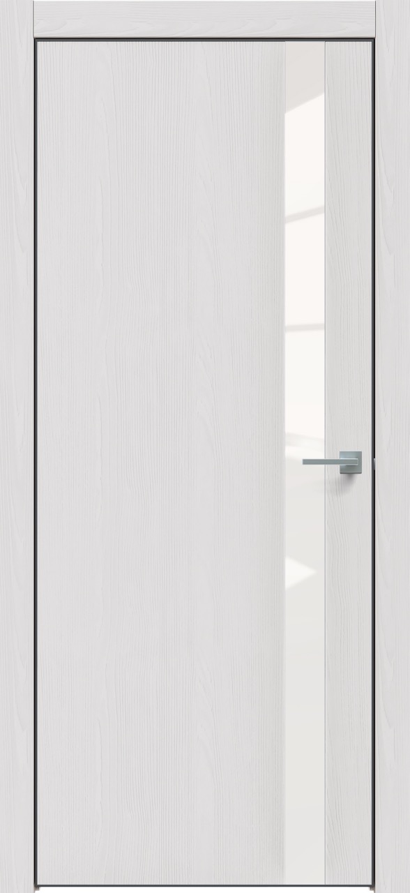 Дверь межкомнатная Triadoors 702. Дуб Серена светло-серый. Кромка: Алюм. черный. Вставка: Белый лакобель