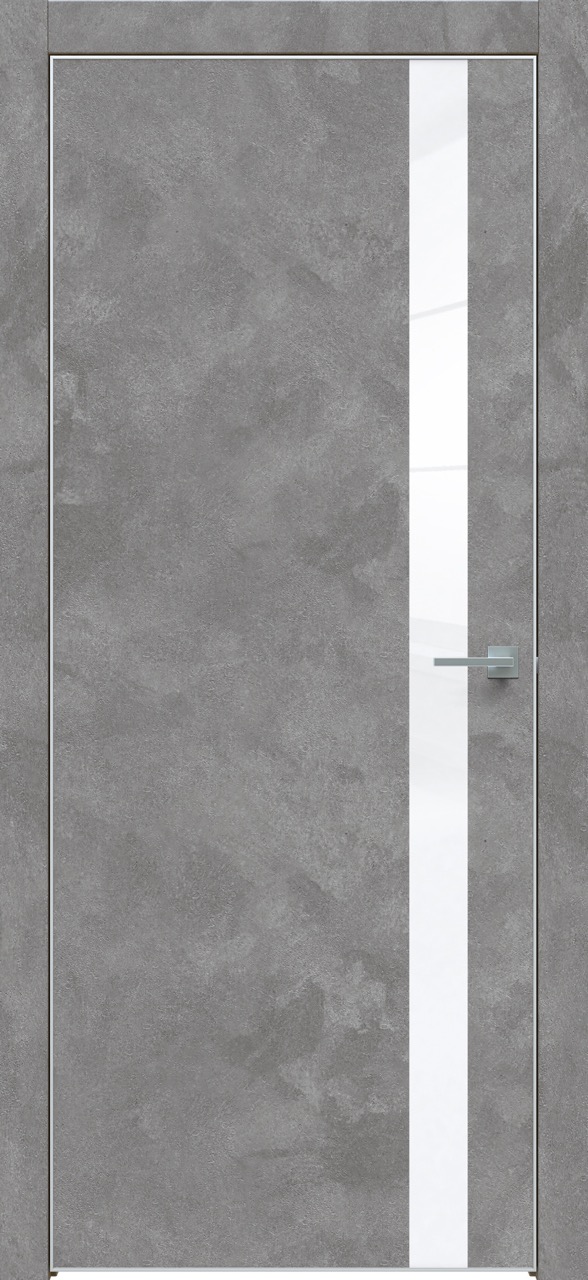 Дверь межкомнатная Triadoors 702. Бетон темно-серый. Кромка: Алюм. хром Вставка: Белый глянец