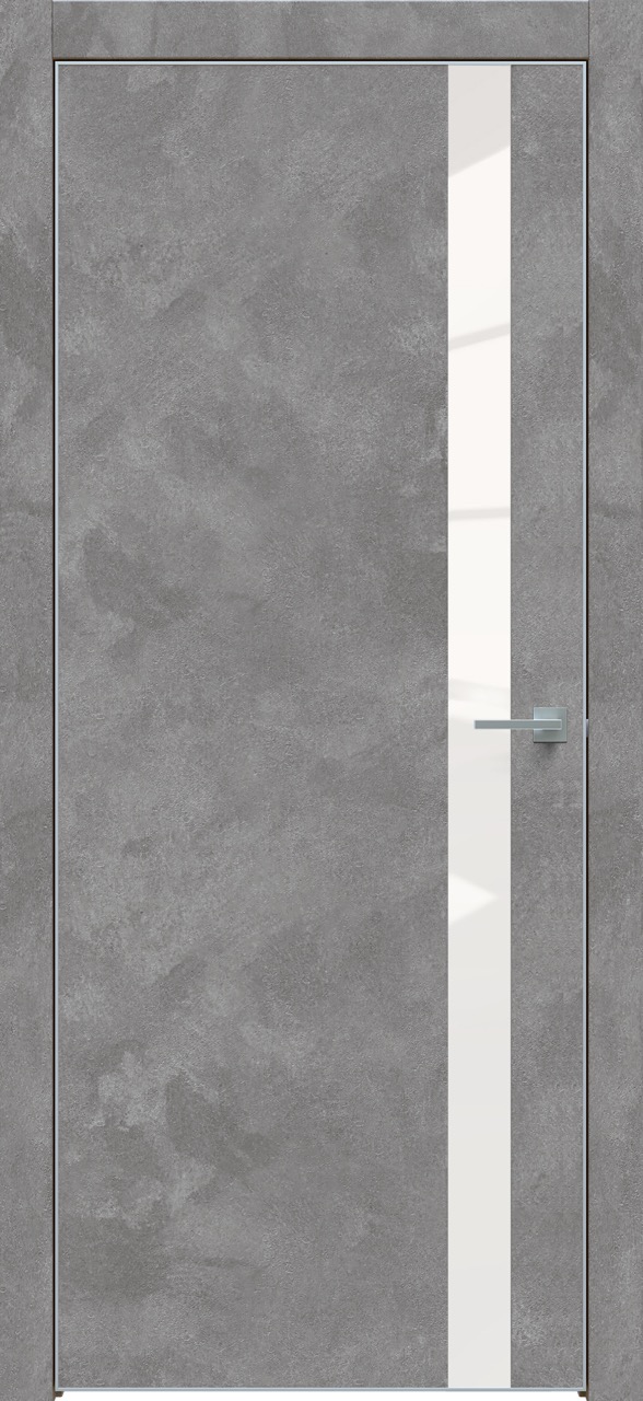 Дверь межкомнатная Triadoors 702. Бетон темно-серый. Кромка: Алюм. хром Вставка: Белый лакобель