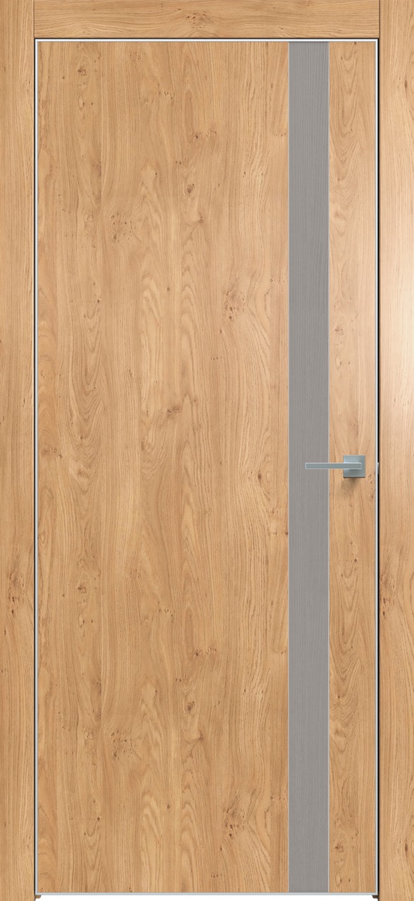 Дверь межкомнатная Triadoors 702. Дуб винчестер светлый. Кромка: Алюм. хром. Вставка: Дуб серена каменно-серый