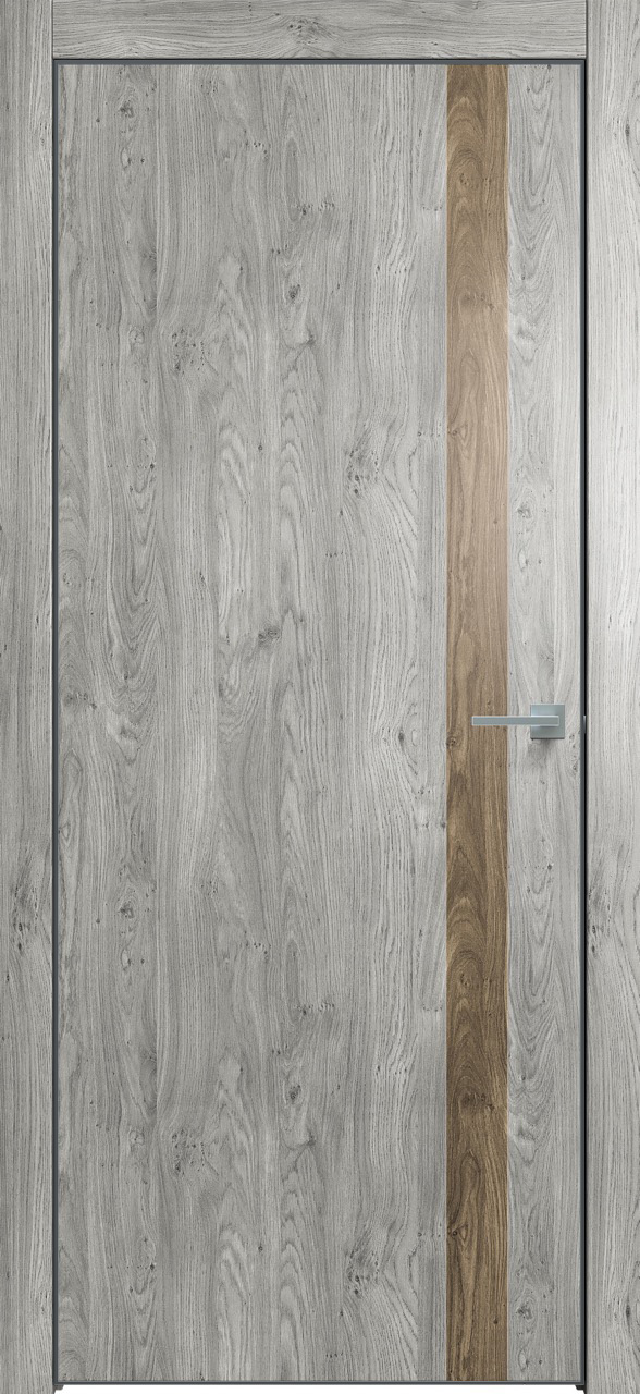 Дверь межкомнатная Triadoors 702. Дуб винчестер серый. Кромка: Алюм. черный. Вставка: Дуб винчестер трюфель