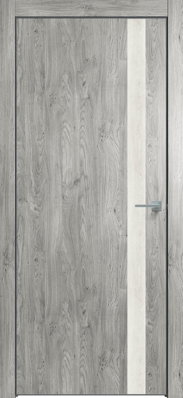 Дверь межкомнатная Triadoors 702. Дуб винчестер серый. Кромка: Алюм. черный. Вставка: Дуб патина золото