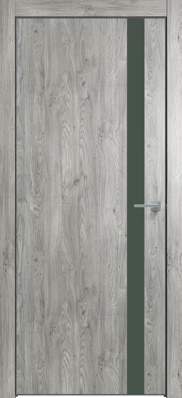 Дверь межкомнатная Triadoors 702. Дуб винчестер серый. Кромка: Алюм. черный. Вставка: Дарк грин