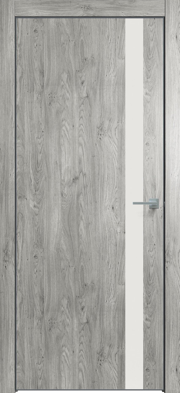 Дверь межкомнатная Triadoors 702. Дуб винчестер серый. Кромка: Алюм. черный. Вставка: Белоснежный матовый