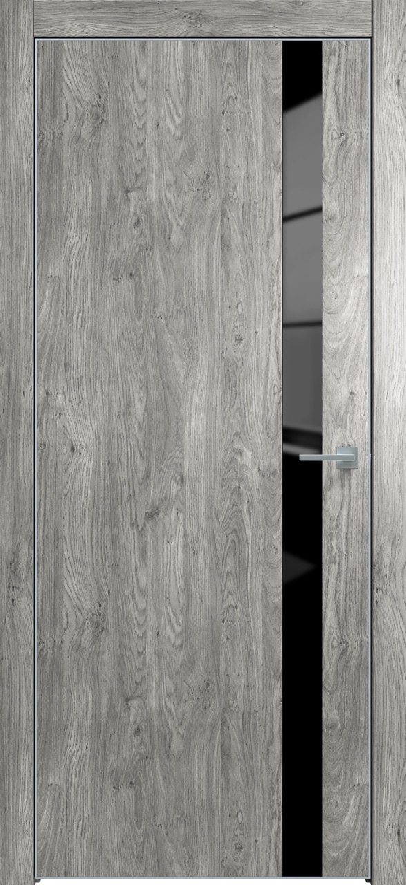 Дверь межкомнатная Triadoors 702. Дуб винчестер серый. Кромка: Алюм. хром. Вставка: Черный лакобель