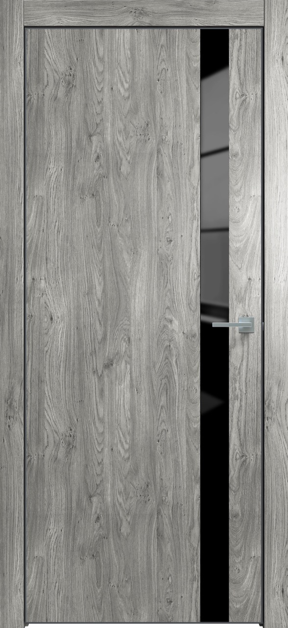 Дверь межкомнатная Triadoors 702. Дуб винчестер серый. Кромка: Алюм. черный. Вставка: Черный лакобель