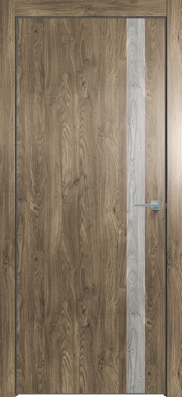 Дверь межкомнатная Triadoors 702. Дуб винчестер трюфель. Кромка: Алюм. черный. Вставка: Дуб винчестер серый