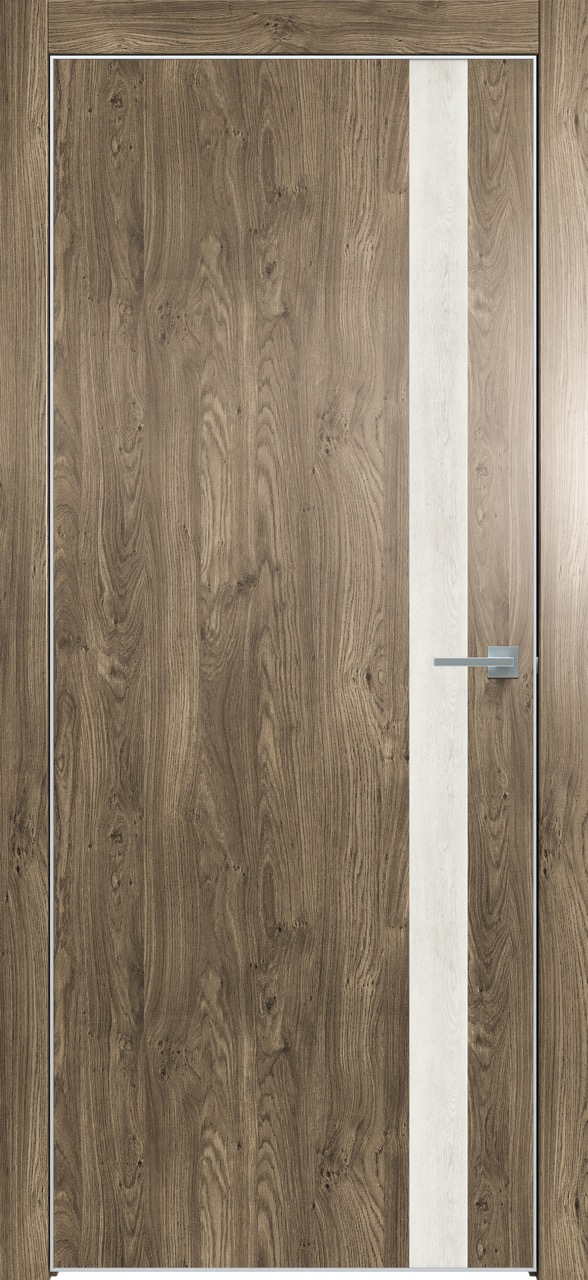 Дверь межкомнатная Triadoors 702. Дуб винчестер трюфель. Кромка: Алюм. хром. Вставка: Дуб патина золото