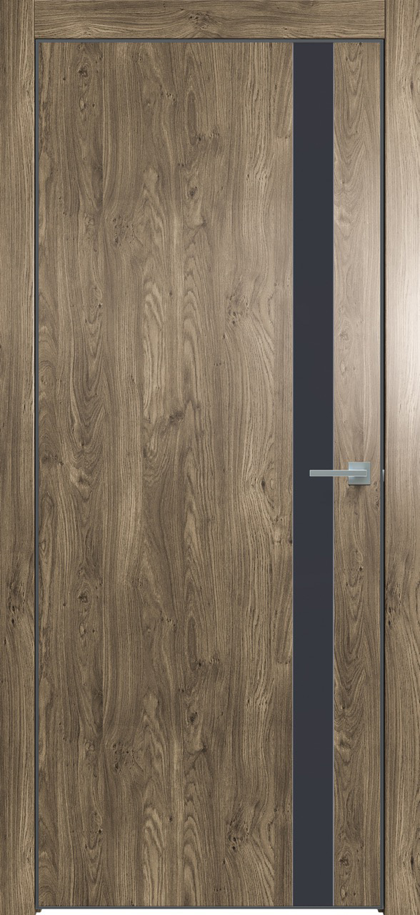 Дверь межкомнатная Triadoors 702. Дуб винчестер трюфель. Кромка: Алюм. черный. Вставка: Дарк блю