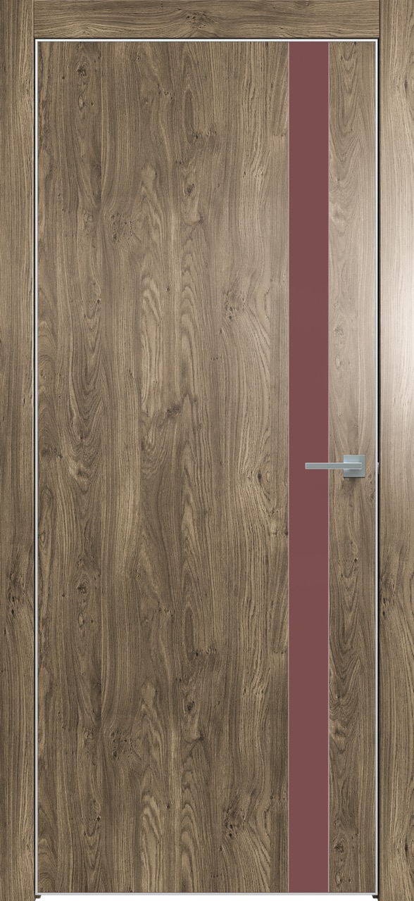 Дверь межкомнатная Triadoors 702. Дуб винчестер трюфель. Кромка: Алюм. хром. Вставка: Лофт ред