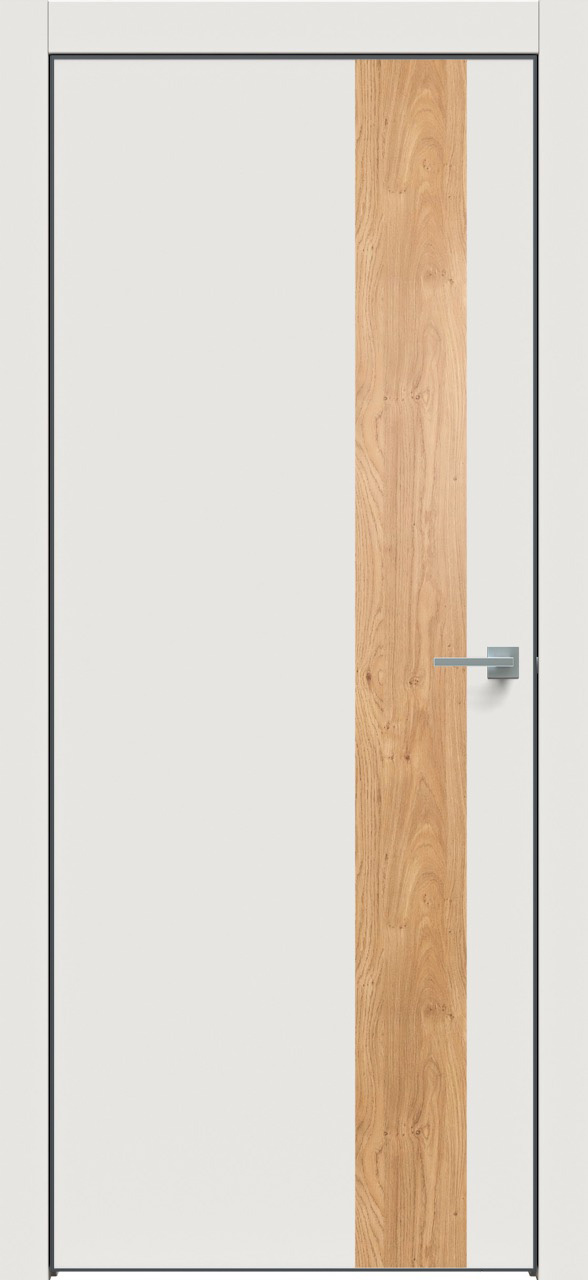 Дверь межкомнатная Triadoors 703. Белоснежный матовый. Кромка: Алюм. черный. Вставка: Дуб винчестер светлый