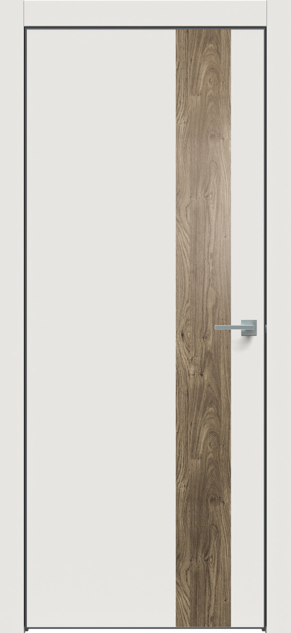 Дверь межкомнатная Triadoors 703. Белоснежный матовый. Кромка: Алюм. черный. Вставка: Дуб винчестер трюфель