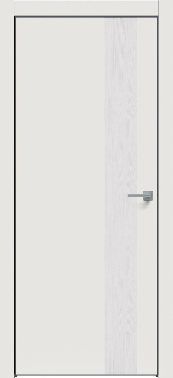 Дверь межкомнатная Triadoors 703. Белоснежный матовый. Кромка: Алюм. черный. Вставка: Дуб серена светло-серый