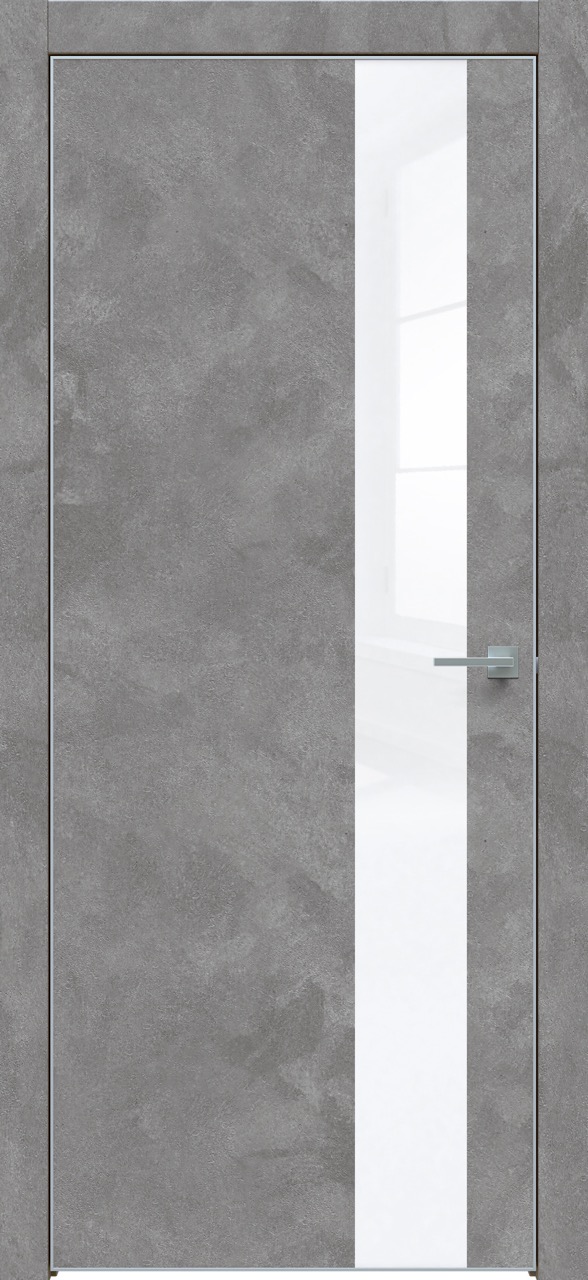 Дверь межкомнатная Triadoors 703. Бетон темно-серый. Кромка: Алюм. хром. Вставка: Белый глянец