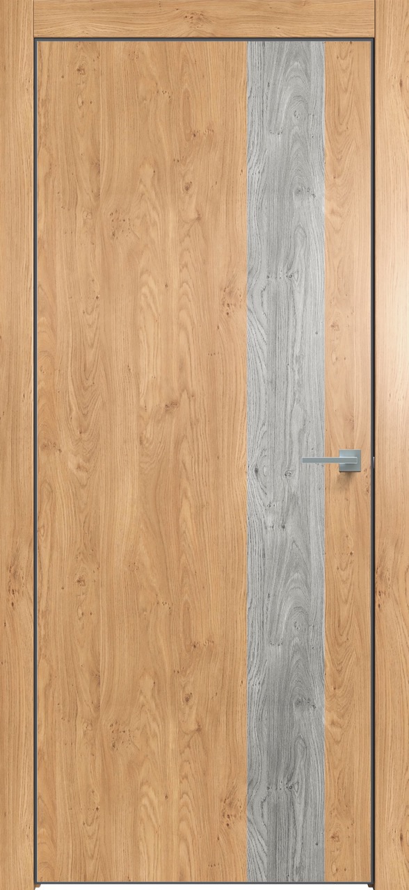 Дверь межкомнатная Triadoors 703. Дуб винчестер светлый. Кромка: Алюм. черный. Вставка: Дуб винчестер серый