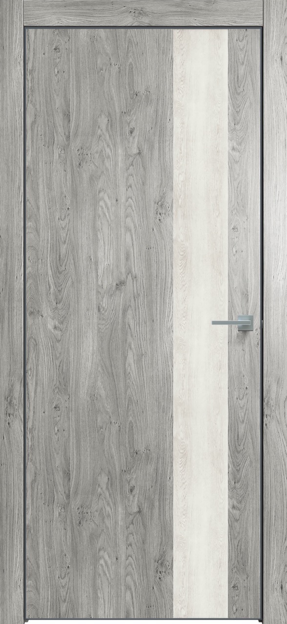 Дверь межкомнатная Triadoors 703. Дуб винчестер серый. Кромка: Алюм. черный. Вставка: Дуб патина золото