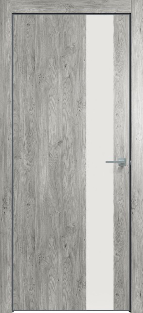 Дверь межкомнатная Triadoors 703. Дуб винчестер серый. Кромка: Алюм. черный. Вставка: Белоснежный матовый