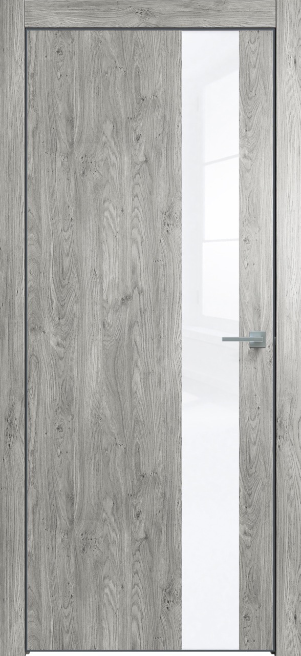 Дверь межкомнатная Triadoors 703. Дуб винчестер серый. Кромка: Алюм. черный. Вставка: Белый глянец