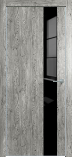 Дверь межкомнатная Triadoors 703. Дуб винчестер серый. Кромка: Алюм. хром. Вставка: Черный лакобель