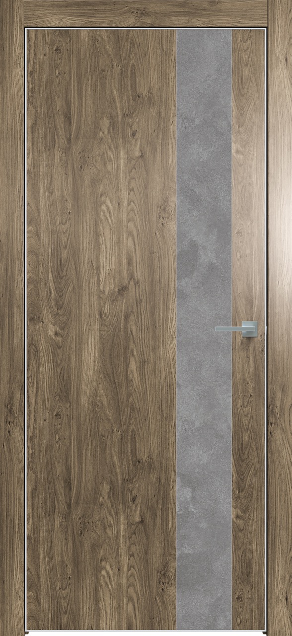 Дверь межкомнатная Triadoors 703. Дуб винчестер трюфель. Кромка: Алюм. хром. Вставка: Бетон темно-серый
