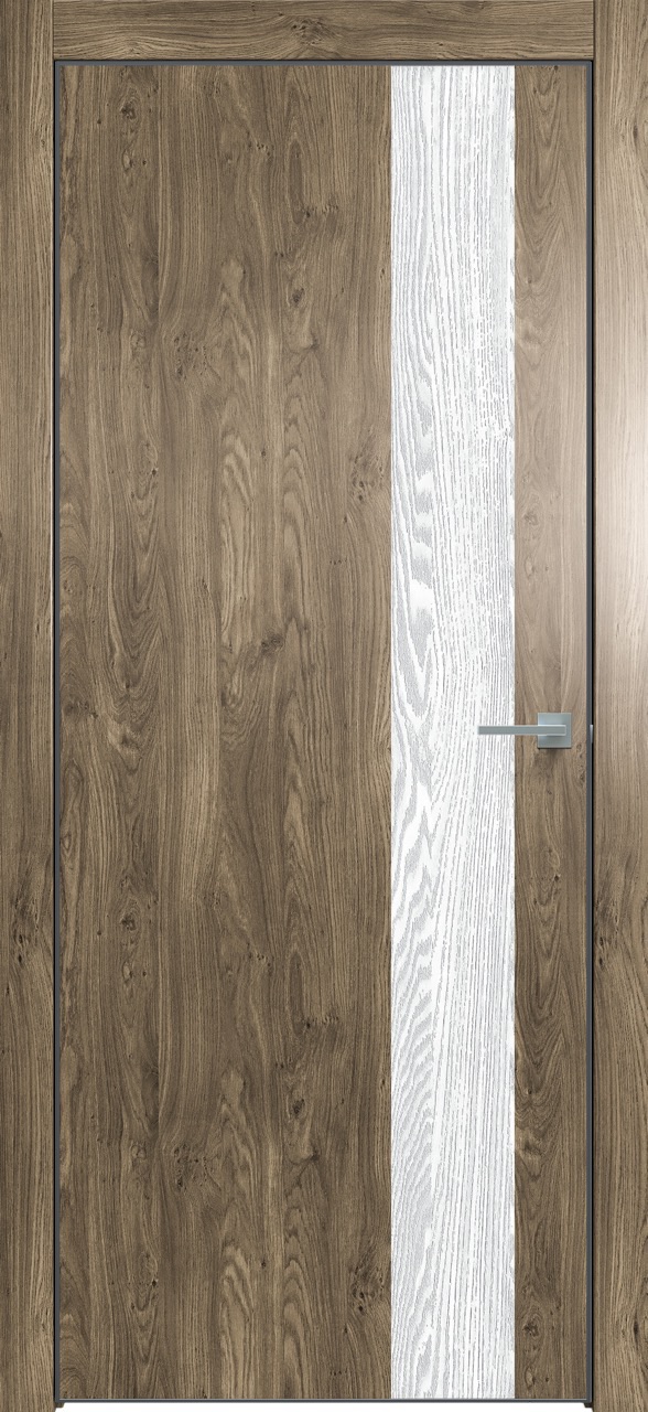 Дверь межкомнатная Triadoors 703. Дуб винчестер трюфель. Кромка: Алюм. черный. Вставка: Дуб патина серый