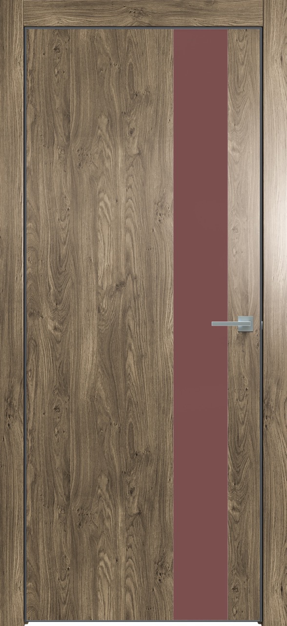 Дверь межкомнатная Triadoors 703. Дуб винчестер трюфель. Кромка: Алюм. черный. Вставка: Лофт ред