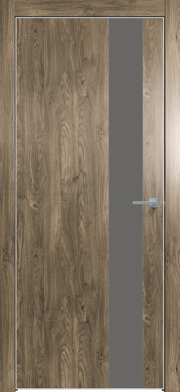 Дверь межкомнатная Triadoors 703. Дуб винчестер трюфель. Кромка: Алюм. хром. Вставка: Медиум грей