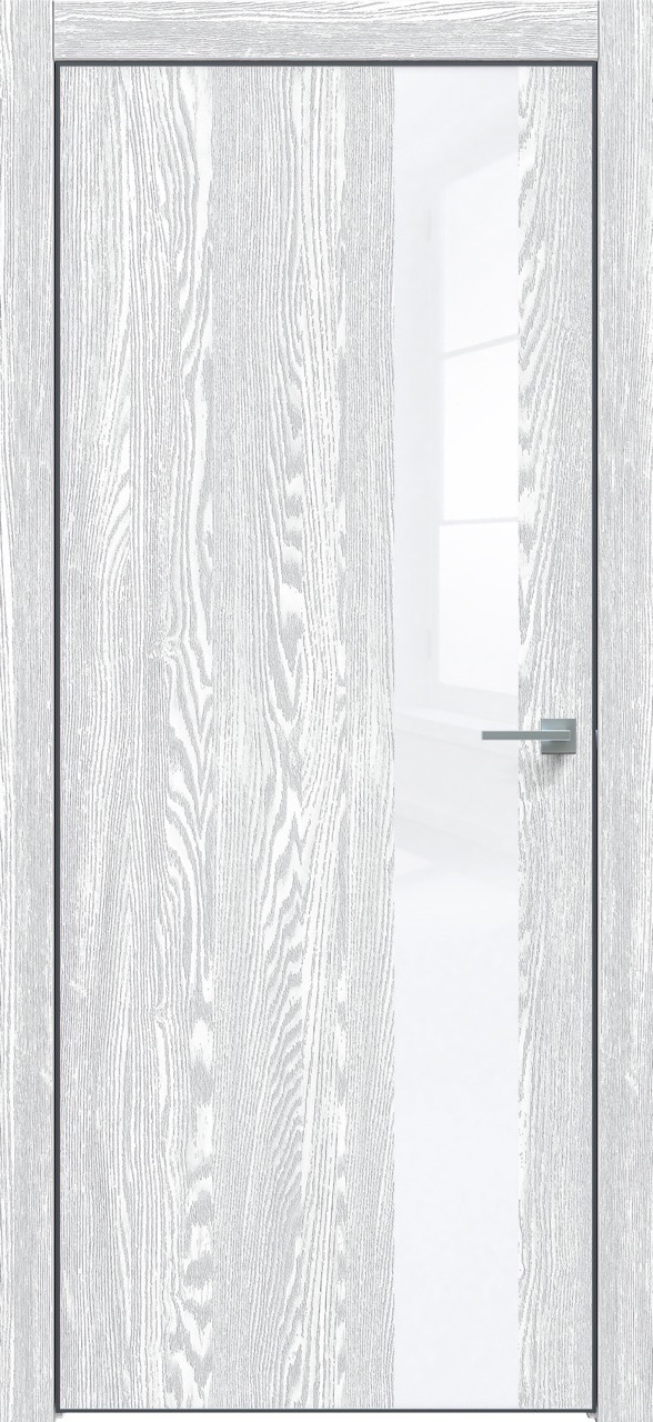 Дверь межкомнатная Triadoors 703. Дуб патина серый. Кромка: Алюм. черный. Вставка: Белый глянец