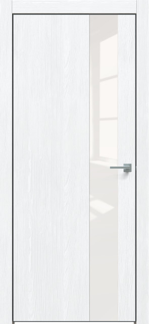 Дверь межкомнатная Triadoors 703. Дуб Серена белый кристалл. Кромка: Алюм. черный. Вставка: Белый лакобель