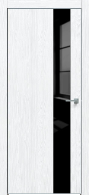 Дверь межкомнатная Triadoors 703. Дуб Серена белый кристалл. Кромка: Алюм. хром. Вставка: Черный лакобель