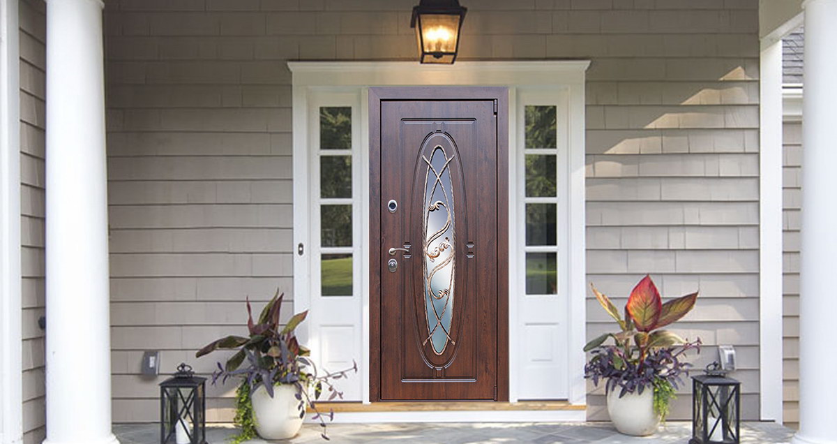 Стальная дверь 3К «Монарх с окном и ковкой»