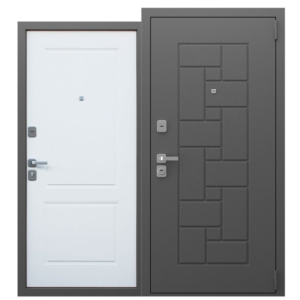Лист металла — 1,2 мм. Декоративный штамп на металле. Порошковое покрытие "Букле графит". Наличники гладкие. |