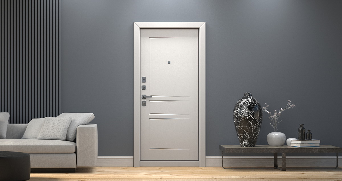 Экошпон.Наружный лист металла 1,5 мм. Объемная фрезеровка МДФ 10 мм, цвет «Силк Титан»; Наличник МДФ 80 мм |