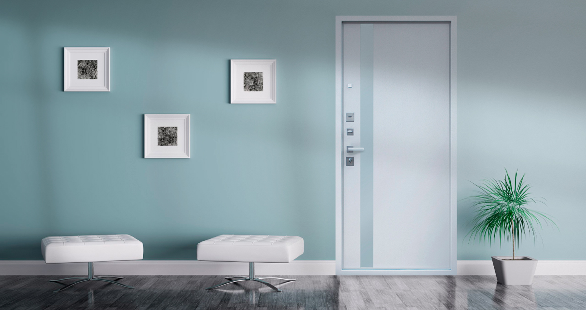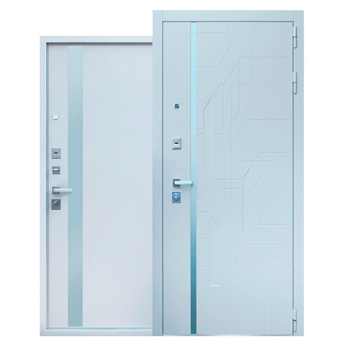 Экошпон. Наружный лист металла 1,5 мм. Дизайн панели ФЛС СО ВСТАВКОЙ МАТОВАЯ БЕЛАЯ ЛАКОБЕЛЬ. Объемная фрезеровка МДФ 10 мм, цвет «Матовый белый»; Наличник МДФ 80 мм |