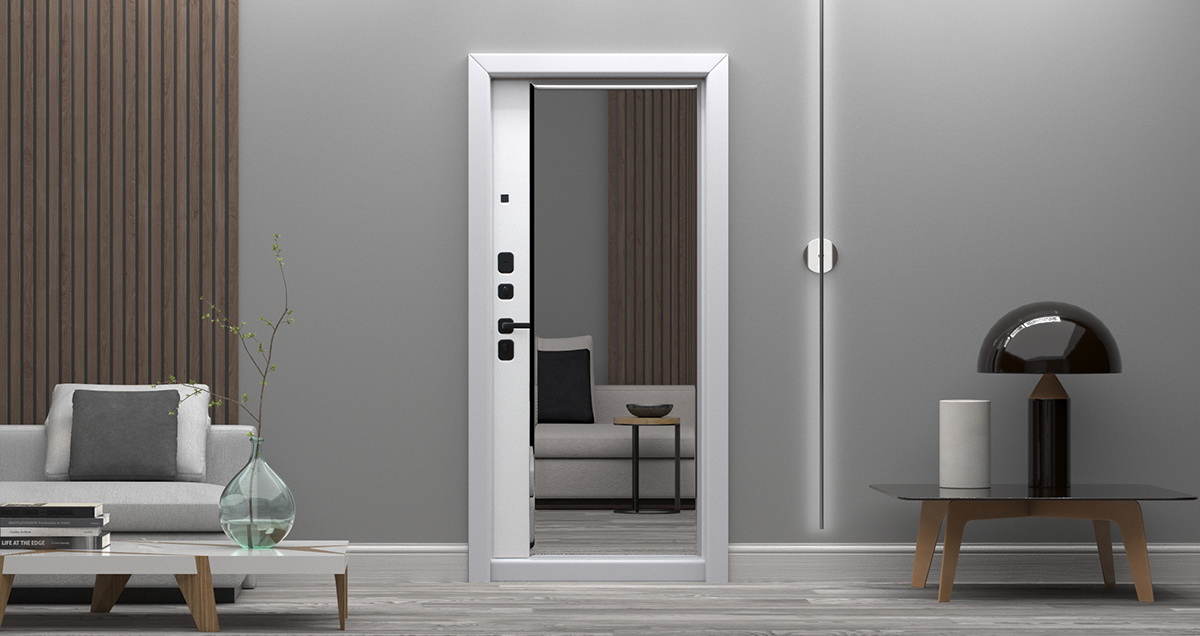 Представляем новинку от «АСД» ― модель «Ливерпуль с зеркалом», сочетающую новые дизайнерские решения и наш многолетний опыт производства стальных дверей. Наружный лист (1,5 мм) отделан панелью МДФ в строгом цвете «белый матовый» со вставкой черная лакобель  , внутреннее полотно отделано  БОЛЬШИМ  ЗЕРКАЛОМ  С ФАЦЕТОМ , с вставкой  в замковой части  экошпоном в элегантном цвете «белый матовый». Безопасность модели обеспечивают два замка «Гардиан» и стальная броненакладка. Благодаря качественному утеплению «Ливерпуль» не только защитит ваш дом от недоброжелательных гостей, но и сделает его более комфортным.