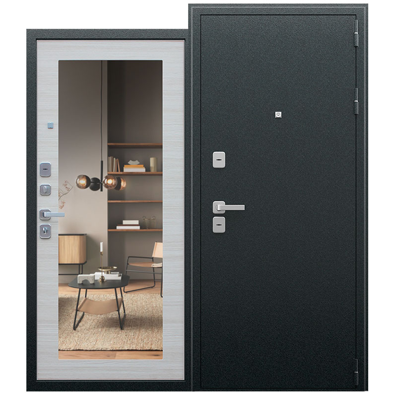 Стальная дверь «Next 1» с зеркалом. Акация светлая поперечная