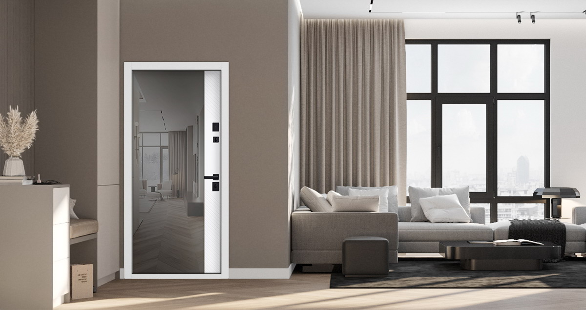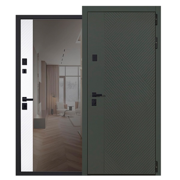 Стальная дверь «Санторини» с зеркалом (адаптивная замковая часть).