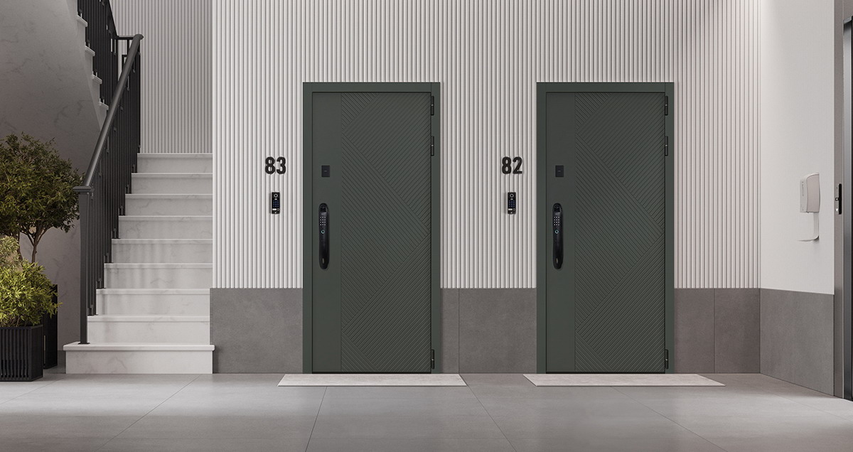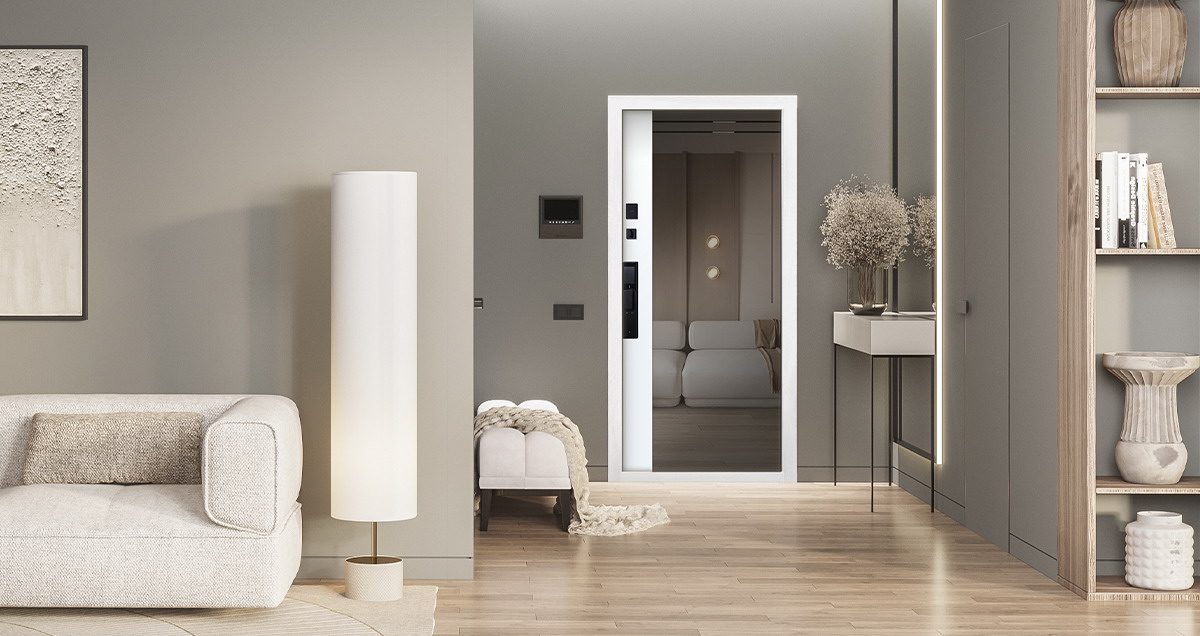 Стальная дверь «Санторини» с зеркалом (биометрический замок Smart lock DZ 888)