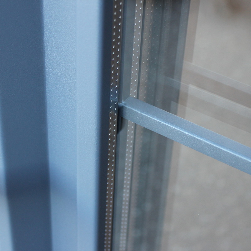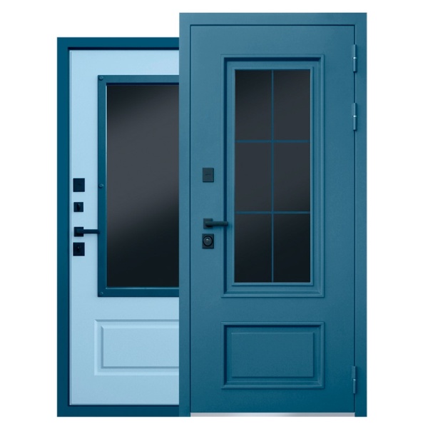Наружный лист металла толщиной 1,8 мм, два слоя покрытия: первый слой - цинкогрунт, второй слой - порошковое покрытие. Металлофиленки 2шт. Наличник прямой. Английская решетка внутри тонированного стеклопакета (цвет "муар серый"). |
