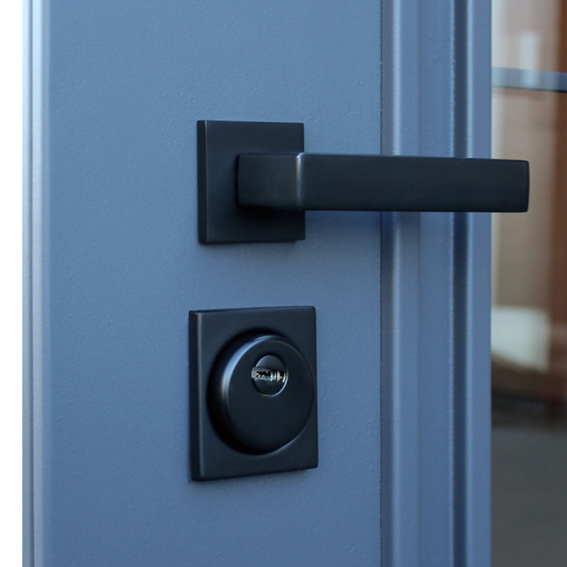 На квадратной розетке; Ручка, ночная задвижка, глазок цвет «Черный» |