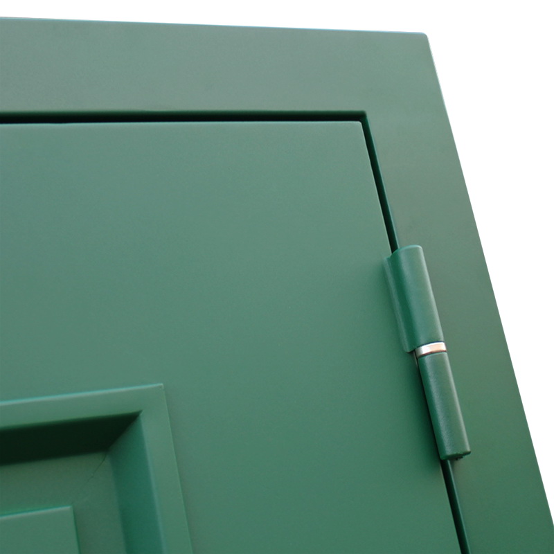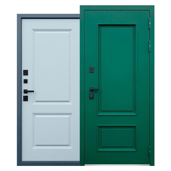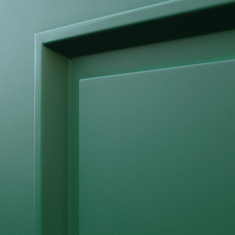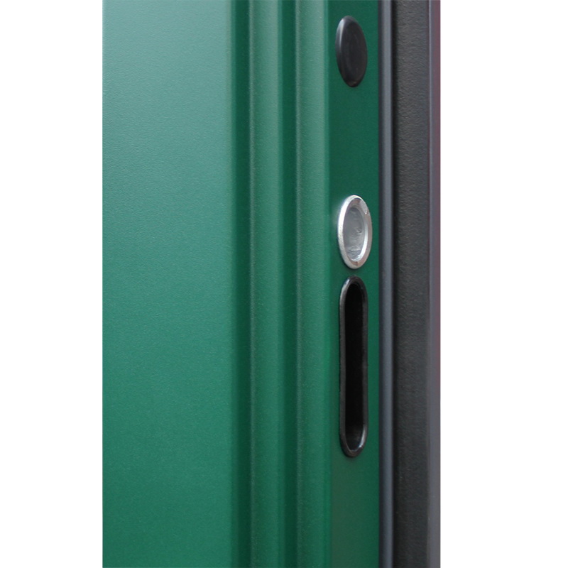 Наружный лист металла толщиной 1,8 мм, два слоя покрытия: первый слой - цинкогрунт, второй слой - порошковое покрытие. Металлофиленки 2шт. Наличник прямой. (цвет "муар зеленый"). |