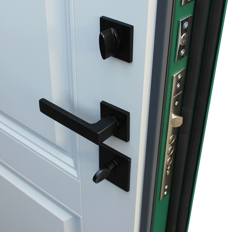 На квадратной розетке; Ручка, ночная задвижка, глазок цвет «Черный» |