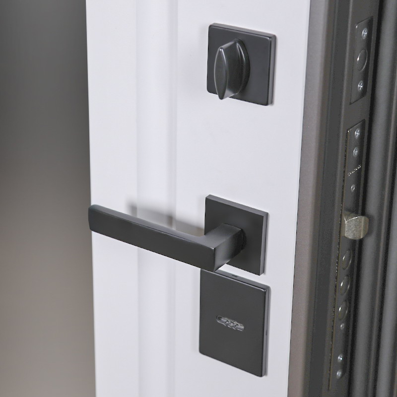 На квадратной розетке: ручка, ночная задвижка. Цвет фурнитуры: «Хром» |