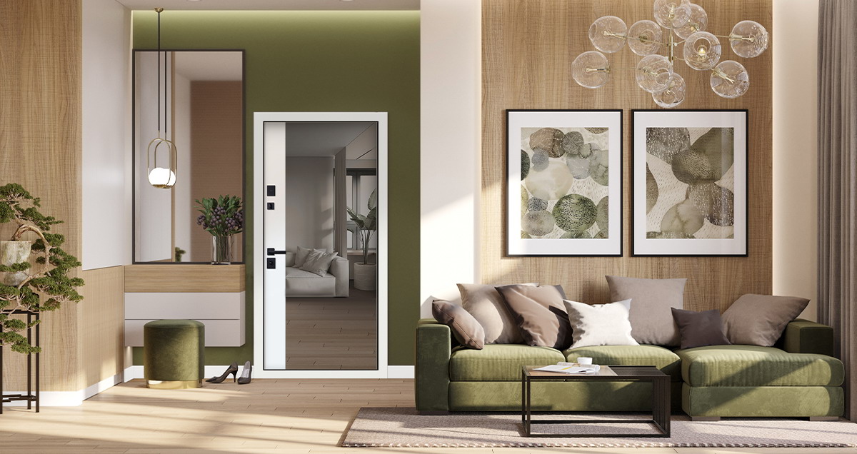 Стальная дверь «Агава» с зеркалом